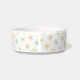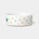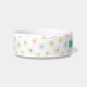 Deze geweldige moderne hobby uit de middeleeuwse eeuw heeft een vuurwerk in oranje, groen en turquoise, samen met de naam van je huisdier in een zwart casual lettertype. Voeg een leuk element toe aan de voedingstijd van uw huisdier!