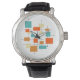Midden-Century Modern Retro Oranje Turquoise Squar Horloge