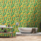 Midden Eeuw Abstract Groen Sinaasappel Geel Behang