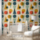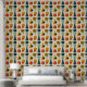 Verander je ruimte met dit opvallende geometrische behang in mid-century modern stijl, ontworpen om warmte, energie en retro charme in elke kamer te brengen. Met een gewaagde opstelling van strakke lijnen en eenvoudige textuurvormen combineert dit patroon levendige tinten oranje, mosterdgeel, turquoise en aardetinten voor die perfecte vintage-meets-modern esthetiek.
