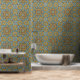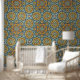 Midden eeuw Marokkaanse blauw gele schil en stok Behang