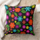 Midden eeuw moderne retro levendige bloemenzwart kussen