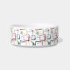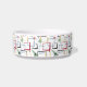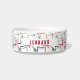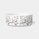 Deze prachtige mid century modern hondenbak bevat abstracte vierkanten, sterrenexplosies en een boemerang in de kleuren rood, groen, blauw, geel en zwart, en de naam van je huisdier in een rood casual lettertype. Voeg een leuk element toe aan de voertijd van je huisdier!