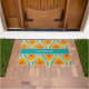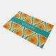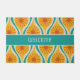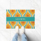 Midden-eeuwse moderne atoomdruppels retro patroon turquoise blauw geel Sinaasappel. Leuke ruimtetijd vibe; jaren '50 jaren '60 mid mod modernistische esthetiek. Blauwgroen en mosterdtinten. Levendig en vrolijk. "Welkom" tekst kan worden aangepast. Door Kierkegaard Design Studio.