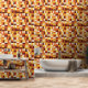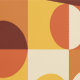 Dit is een modern halfeeuws cirkelpatroon in geel, wit, bruin en verbrand sinaasappel. Het is geweldig decoratief behang voor iedereen die houdt van retro geometrische design