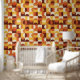 Midden-eeuwse moderne halve cirkels geel en oranje behang