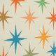 Dit is een elegant modern, kleurrijk atomisch sterrenpatroon in verschillende levendige kleuren zoals blauw, munt groen, sinaasappel en koraal. Het is een geweldig nostalgisch retro-ontwerp in stijl van 60 en 70 jaar.