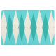 Deze Mid Century Modern Argyle-Vloermat is voorzien van een levendige, turkooistische achtergrond en een patroon van gemene, doorschijnende blauwgroen diamanten die grotere, roomdiamanten overdekken met gouden kleurige, ruimtesuikers. Deze minimalistische geïnspireerde, gedeconstrueerde argyle is een simplistische terugval van het grotere atoomtijdperk dan het leven dat het decoratieve landschap van de jaren vijftig en zestig domineerde. Dit kitschy ontwerp doet denken aan alles, van de bowlingsteegjes van de Palm Springs tot de televisieschermen die je bij je oma gebruikte.