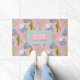 Deze deurmat heeft een modern, modern, woestijnlandschapspatroon met klassieke Sonora-woestijncactus, modernistische landschapspatters en vlekken van vette kleuren in geo-vormen. Je hebt ocotillos, agave, prikperen, saguaro en gouden cilinders in het patroon. De achtergrond is een klassieke 50s midden-eeuw of Palm Springs roze. U kunt deze achtergrondkleur in om het even welke kleur veranderen u in aanpassing wilt, ook het patroon kleiner of groter maken. Pas dit aan met uw eigen groet.