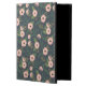 De Latijnse florale gepatterde iPad-draagtas is voorzien van een roze koraalbloemen en groene bladeren op een diepe, rokerblauwe achtergrond met middernacht.