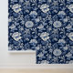 traditioneel behangblauw en wit bloemenbehangschil en stick behangbloemontwerpklassiek decormarinebloembehangelegante huisinrichtingverfijnde interieurseenvoudige installatie achtergronden