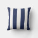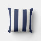 Midnight blauw en witte brede strepen op een ontwerper werpen kussen. Met gestreept kussens worden grote accentuerdecoraties gemaakt, zowel tegen gekleurde als tegen gekleurde sofa's, stoelen en design in de ruimte. Ideaal voor woonboten, woonkamers, slaapkamers, huisjes, strandhuizen en kinderkamers.