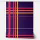 A striking tartan pattern with stripes of bright pink, orange, and yellow on a deep navy background. The neon stripes look especially bright against the darkness of the background. Bold and eye-catching! Also available in a scaled-down version of the same pattern.