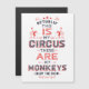 Het ontwerp van Retro Circus Style in rood en marinesblauw op wit, met sterren, spandoeken en designaccenten bevat woorden in de stijl van het state fair festival typografie: "Dit is mijn Circus, dit zijn mijn apen. Geniet van het Show."