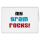 My Gram Rocks T-shirts, kaarten, stickers, canvas tassen, magneten, knopen en andere items met een zwart, blauw en rood tekstontwerp. Deze My Gram Rocks items zijn een geweldige manier om je liefde voor je speciale show te !