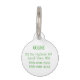Maak een persoonlijke huisdier penning met je designs en tekst voor je hond of kat om ze nooit kwijt te raken. Deze huisdier penningen van Dog Tag Art zijn gemaakt in de USA van 100% gerecycled staal, waardoor de penning extra duurzaam is en nooit zal slijten! Elke penning bevat een metalen sleutelring waarmee deze direct aan de halsband kan worden gehangen. Een unieke penning die past bij je huisdier is zo gemaakt! Beschikbaar in small en large formaat.