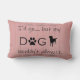 Voeg een leuke aanraking toe aan elke kamer met deze lumbale kussen die perfect zijn voor degenen die liever thuis blijven met hun hond in plaats van uit te gaan. Lumbar-kussen bevatten tekst die zegt: "Ik zou gaan...maar mijn hond zou het niet toestaan . " met een pootdruk en een mondstuk van honden tegen een roze houten achtergrond . Extra cadeauobjecten zijn ook bij dit ontwerp beschikbaar.