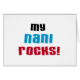 My Nani Rocks T-shirts, kaarten, stickers, canvas tassen, magneten, knopen en andere items met een zwart, blauw en rood tekstontwerp. Deze My Nani Rocks items zijn een geweldige manier om je liefde voor je speciale nani te shows!