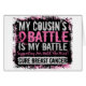 Borstkanker T-shirt-Shirten, Apparel, Gifts en MerchandiseAls je neef borstkanker bestrijdt, wordt haar strijd je strijd. Ondersteun deze dappere borstkankerstrijder met My Battle To t-shirts, kleding, hooien, knopen, sweatshirts, stickers, cadeaus en koopwaar met grijze tekst en een pijnlijk roze borstkankersensibiliserende lint op een zwarte graffiti-achtige achtergrond.