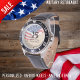 Military Retirement Watch US vlag Tekst toevoegen Horloge
