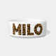 De naam Milo in luipaard. De kleuren kunnen worden veranderd. Om het even welke naam kan worden gevraagd, enkel bericht me.