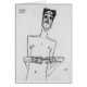 "Mime van Osen mit aneinandergelegten Fingerspitzen" Zwarte krijttekening van een zeer dunne mingle, die recht naar rechts leunt met lange zweepslagen, bonige schouders en naast elkaar geplaatste vingertoppen. Tekening van de Oostenrijkse schilder Egon Schiele (1890-1918) uit zijn Mime van Osen-serie van 1910.