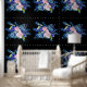 Minimaal Zwart Blauw en Roze Kleur Floral Design Behang