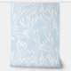 This minimal coastal pattern features coral and seaweed silhouettes in soft white set against a light blue background. The fresh, airy palette creates a calm ocean-inspired look with a clean, modern aesthetic. Designed for contemporary coastal interiors, this wallpaper works well in bathrooms, bedrooms, or serene living spaces. A subtle and refined choice for beach house, nautical, or minimalist seaside décor.