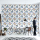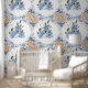 Minimal Design Blauwe Kleur Bloemen Behang