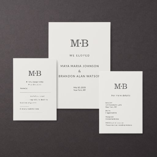 A minimalist modern wedding thank you card designed for elegant elopements and intimate celebrations. This clean, editorial-style thank you card features refined typography, a soft neutral color palette, and a timeless monogram layout that coordinates seamlessly with modern wedding invitation suites.