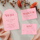 This minimal red and pink retro wedding table number card features a clean and stylish design. The soft pink background pairs with bold red text for a modern retro look. The simple layout keeps the table number clear and easy to read from a distance.