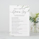 Vermaak je gasten met dit leuke 'wat zei de groom' spel, met waterverf botanische foliage greenergy design en stijlvol modern script, eenvoudig en elegant, geweldig voor modern rustisch vrijgezellenfeest, botanische tuinbruiloft feestjes. Bekijk alle vrijgezellenfeest games in collectie.