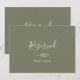 Dit minimale donkergroene gereserveerde bord is perfect voor een boho bruiloft. De kaart is dubbelzijdig (prints aan beide zijden). Het ontwerp is voorzien van een eenvoudig groen bladsilhouet in olijfgroen met een minimalistische Bohemen-stijl in de bergen. Gebruik deze kaarten om stoelen of tafels te reserveren bij uw trouwceremonie, ontvangst of om het even welke gebeurtenis.
