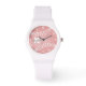 Dit leuke softbalhorloge heeft een eenvoudige roze softbalafbeelding met een chique, digitaal gemaakte textuur en witte naden - aanpassen met haar naam en monogram of jersey-nummer - door katz_d_zynes