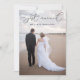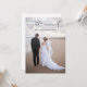 Minimale moderne trouwkaart om familie en vrienden te laten weten dat jullie trouwplannen zijn gewijzigd en jullie zijn weggelopen. De voorkant is gevuld met jullie trouwfoto. Bovenaan staat "just married" geschreven in een stijlvol schrift met kleine hartjes boven de "j" en "i" en daaronder kunnen jullie jullie voornamen of de naam van de heer en mevrouw toevoegen. Op de achterkant kun je jullie bericht in meer detail personaliseren. Fototip -- een foto met lichte kleuren aan de bovenkant laat het schrift het beste zien.