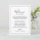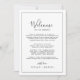 Deze minimalistische welkome briefroutekaarten en kaartjes zijn perfect voor een welkomsttas van de bestemmingsbruiloft. Het moderne romantische ontwerp kenmerkt klassieke zwarte en witte typografie in combinatie met een robuuste, maar elegante kalligrafie met een stijl met handschrift. in elke kleur. Houd het ontwerp eenvoudig en elegant, zoals het is, of personaliseer het door uw eigen grafiek en kunstwerk toe te voegen. De voorzijde van de kaart is voorzien van een welkome brief en een reisroute. Voeg een kaart van uw toevluchtsoord toe met de belangrijkste locaties die op de achterzijde van de kaart zijn vermeld.