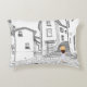 Bring a sense of quiet wanderlust to your home with this minimalist European street illustration accent pillow. The design showcases a hand-drawn black-and-white old town street with cobblestones and stairways, accented by a single figure in a light dress and straw hat for a soft, artistic contrast.