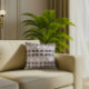 Een goed stevig kussen dat uitstekend past in ons Zen, maar toch kleurige interieur en een ander kussen van dezelfde ontwerper. Mooie kleuren, warmer dan op de afbeelding.