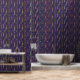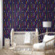 Embrace bold sophistication with minimalist, mid-century-inspired stripes in hot pink, white, and yellow on a deep navy background.