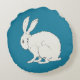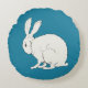 Minimalist Zittend Wit Konijn zijprofiel Blauw Rond Kussen
