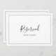 Dit minimalistische gereserveerde teken is perfect voor een eenvoudige bruiloft. De kaart is dubbelzijdig (prints aan beide zijden). Het moderne romantische ontwerp kenmerkt klassieke zwarte en witte typografie in combinatie met een robuuste, maar elegante kalligrafie met een stijl met handschrift. in elke kleur. Houd het ontwerp eenvoudig en elegant, zoals het is, of personaliseer het door uw eigen grafiek en kunstwerk toe te voegen. Gebruik deze kaarten om stoelen of tafels te reserveren bij uw trouwceremonie, ontvangst of om het even welke gebeurtenis.