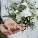 Een elegante samenstelling op een beige achtergrond voor een strikt minimalistische bruiloft. Ideaal om te harmoniseren met de feestelijke stemming, waardoor het een unieke vorm van plechtigheid krijgt.