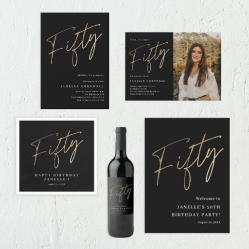 Minimal Script Black and Gold 50th Birthday PartyOntworpen door Stacey Meacham