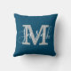 Minimalistisch Script Monogram Naam Blauw & Wit Kussen