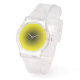 Minimalistisch transparant met zwarte en gele wijz horloge