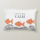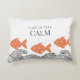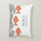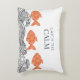Vang de kalmte, vis en golven gooien kussen. De vissen zijn gemaakt in een zacht terracotta sinaasappel en versierd met een delicaat bloemmotief, wat een grillige, Japans geïnspireerde toets toevoegt. De golven hieronder zijn geïllustreerd met fijne zwarte lijnen in een traditionele houtsnede stijl.
