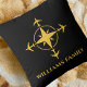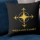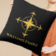 Minimalistische Luchtvaart Kompas Vliegtuigreis Custom kussen. Stel je voor dat je je Aviation- of Travel-passie laat zien met dit unieke zwart-gouden kussen met een afbeelding van een vliegtuig dat in verschillende richtingen op een kompas vliegt. U kunt het aanpassen door de kleur van het kompas te veranderen van goud naar uw favoriete kleur en uw familienaam aan de onderkant toe te voegen. Neem contact met mij op voor verdere maatwerk. Bedankt voor een bezoek aan onze winkel! Copyright Soar in Style Design LLC.