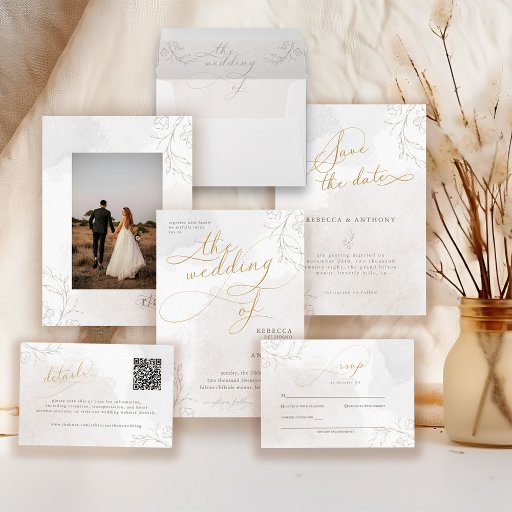 Kondig uw speciale dag aan met deze elegante huwelijksuitnodiging vellum overlay. Met een prachtig kalligrafiescript waarin "The Wedding of" wordt aangekondigd, gevolgd door de namen en huwelijksdetails van het paar, voegt deze overlay een vleugje sophisticatie toe aan uw uitnodigingen. Het delicate ontwerp vormt een aanvulling op verschillende uitnodigingsstijlen, met als meest trendy optie om het toe te voegen als een foto-overlay, waardoor een samenhangende en verfijnde look ontstaat voor uw grote dag. Personaliseer het met uw namen en trouwdatum voor een unieke en gedenkwaardige herinnering. Deze vellum overlay is de perfecte manier om uw bruiloft briefpapier te verbeteren en creëer een prachtige eerste indruk voor uw gasten.