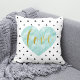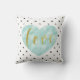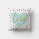 Het rendy script typografie design met het woord "liefde" op bedrukt goud boven een waterverf-hart van de munt en een zwart-wit driehoekig handgeschilderd patroon.