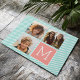 Mint en koraal fotocollage met aangepast monogram deurmat